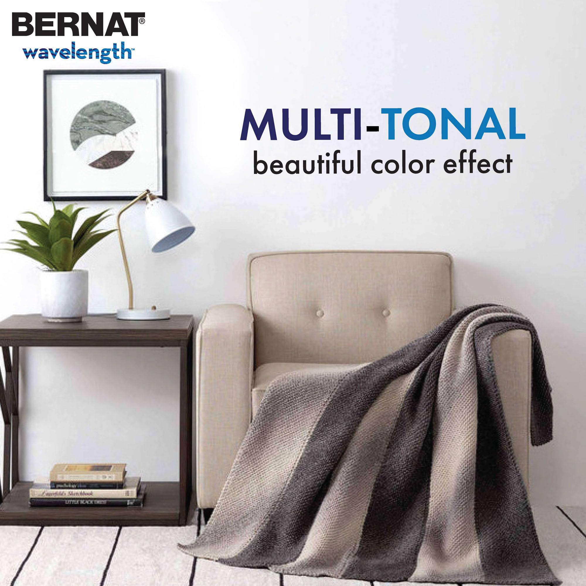- This substantial yarn stitches up with a pulsed flow of tones that oscillate from light to dark, adding a multi-dimensional look to knit and crochet projects. Explore the far corners of your imagination with a selection of shades that stimulate your creativity and bring intrigue to handmade originals. Wavelength is a unique choice that lets you create projects of cozy distinction, from toasty hats and playful scarves, to enticing blankets and beautiful pillows. Its chunky weight makes it a go-to choice for comfort and warmth, while the 100% acrylic fiber is conveniently machine washable and dryable.